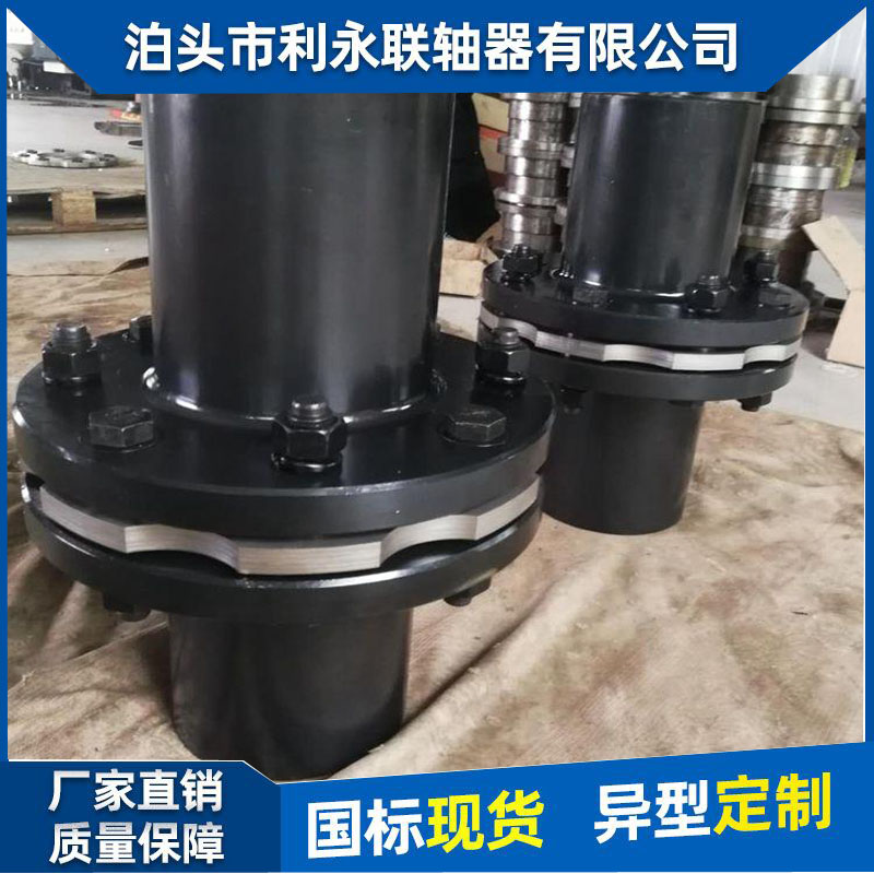 一、由幾組膜片(不銹鋼薄板)用螺栓交錯地與兩半聯(lián)軸器聯(lián)接,每組膜片由數(shù)片疊集而成,膜片分為連桿式和